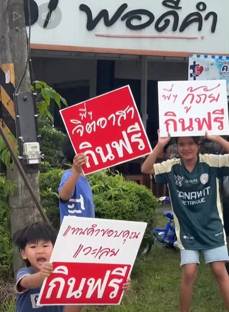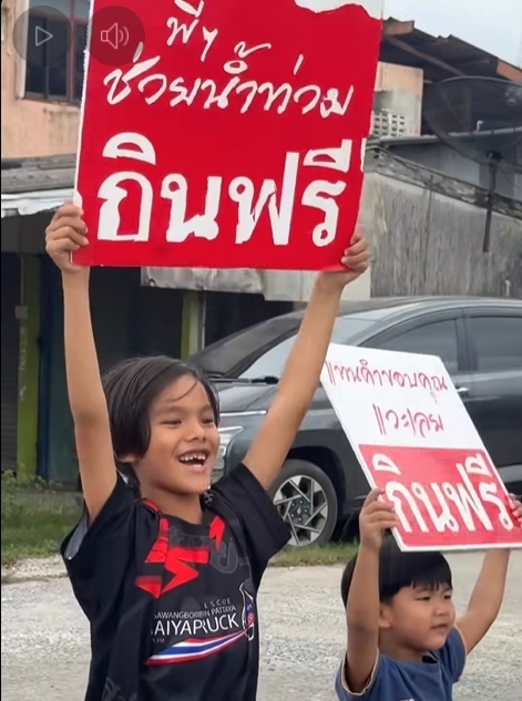 วันที่ 2 ธ.ค. 68 เฟซบุ๊กเพจ “บ้านดุง อัพเดต Bandung Update “ได้โพสต์คลิปวิดีโอภาพแห่งความประทับใจที่ถูกแชร์สนั่นโซเชียล เมื่อเหล่าบรรดาเด็กๆ ชูป้ายข้อความน่ารักๆ อาทิ พี่ๆ จิตอาสากินฟรี, พี่ๆ กู้ภัยกินฟรี, พี่ๆ ช่วยน้ำท่วมกินฟรี บริเวณหน้า ร้านอาหาร “พอดีคำ” ในจ.อุดรธานี เพื่อให้กำลังใจ และขอบคุณเหล่าบรรดาฮีโร่จิตอาสาที่เดินทางไปช่วยเหลือผู้ประสบภัยน้ำท่วมภาคใต้