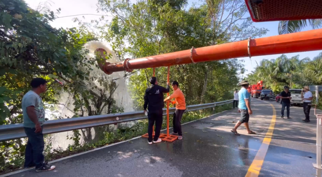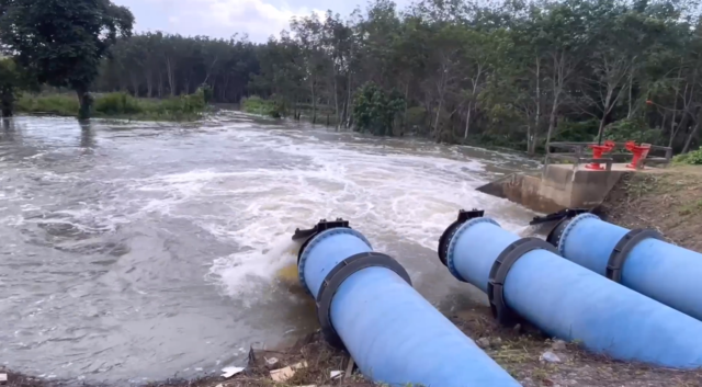 โดยเจ้าหน้าที่เผยว่าพื้นที่ทั้งหมดกว้างประมาณ 1,000 ไร่ มีน้ำท่วมขังกว่า 2 ล้านคิว โดยเครื่องสูบน้ำสามารถสูบได้ประมาณ 35,000 ลิตรต่อนาที และกำลังรอเครื่องสูบน้ำจาก จ.พัทลุง มาสบทบอีก 2 เครื่อง เพราะตอนนี้เครื่องสูบน้ำจำนวนมากต้องระดมเข้าช่วย อ.หาดใหญ่ จ.สงขลา คาดต้องใช้เวลานาน 2 - 3 วัน ระดับน้ำจะลดลงเข้าสู่ภาวะปกติ