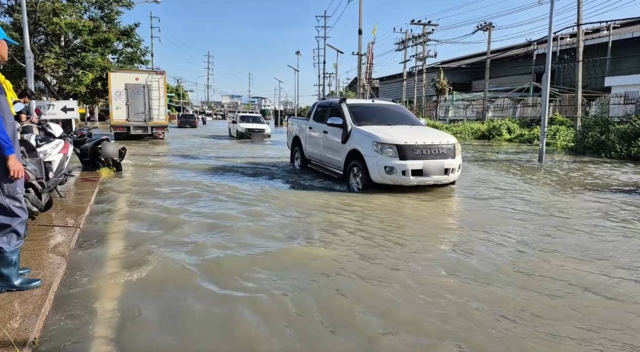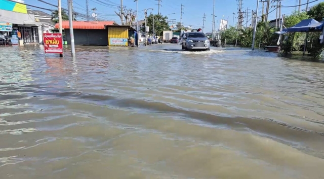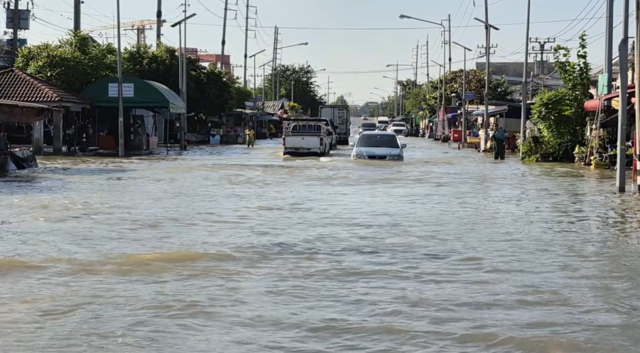 เมื่อเวลา 10.00 น. (7 ธ.ค. 2568) พื้นที่ อ.พระสมุทรเจดีย์ พบน้ำทะเลหนุนท่วมสูงบริเวณถนนสาย 303 สุขสวัสดิ์-ป้อมพระจุล ตั้งแต่สามแยกพระสมุทรเจดีย์ไปจนถึงทางเข้าซอยวัดแหลมฟ้าผ่าตลอดแนวยาว มีน้ำท่วมตลอดสาย บางจุดน้ำท่วมสูง 60-80 ซม. ทำให้รถยนต์สัญจรไปมาลำบาก บางคันเครื่องดับต้องลงเข็นขึ้นที่สูงหรือสถานที่พ้นน้ำ
