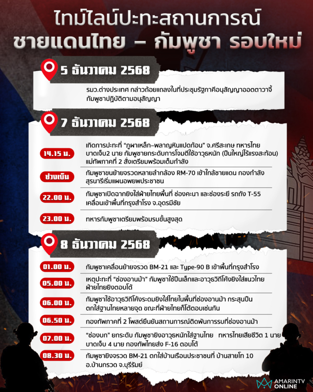เปิดไทม์ไลน์ปะทะเดือด สถานการณ์ชายแดนไทย – กัมพูชา รอบใหม่