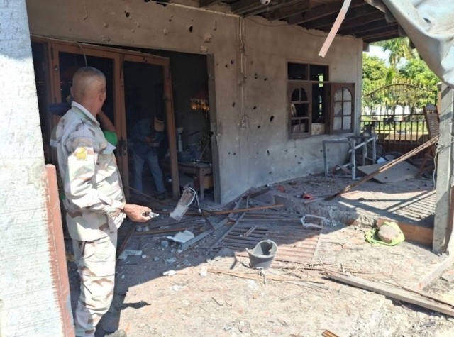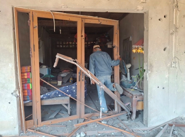 วันที่ 9 ธ.ค.2568 ผู้สื่อข่าวประจำจังหวัดสุรินทร์ รายงานว่า นายสุทธิโรจน์ เจริญธนะศักดิ์ นายอำเภอกาบเชิง จ.สุรินทร์ รายงานสถานการณ์เมื่อ 9 ธ.ค. 68 เวลา 09.50 น.ในพื้นที่ อ.กาบเชิง จ.สุรินทร์ มีกระสุนปืนใหญ่ตกเพิ่มเติมในพื้นที่หมู่บ้าน ต.ตะเคียน อ.กาบเชิง จำนวน 1 ลูก ตกตรงมุกหน้าบ้านของชาวบ้าน ในพื้นที่ตำบลตะเคียน อำเภอกาบเชิง จังหวัดสุรินทร์