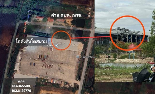 #เพิ่มเติมทางข่าวใน กพช. ออกมายืนยันว่า หน่วย ตชด. 891 ของกัมพูชาตกเป็นเป้าหมายการทิ้งระเบิด โกดังอยู่ใกล้ เพราะฉะนั้นหลังคาของโกดังสิงโตสยาม อาจจะเสียหายเพราะแรงระเบิดก็เป็นไปได้ครับ โกดังอาจจะไม่ได้เป็นเป้าหมายของการโจมตีครั้งนี้