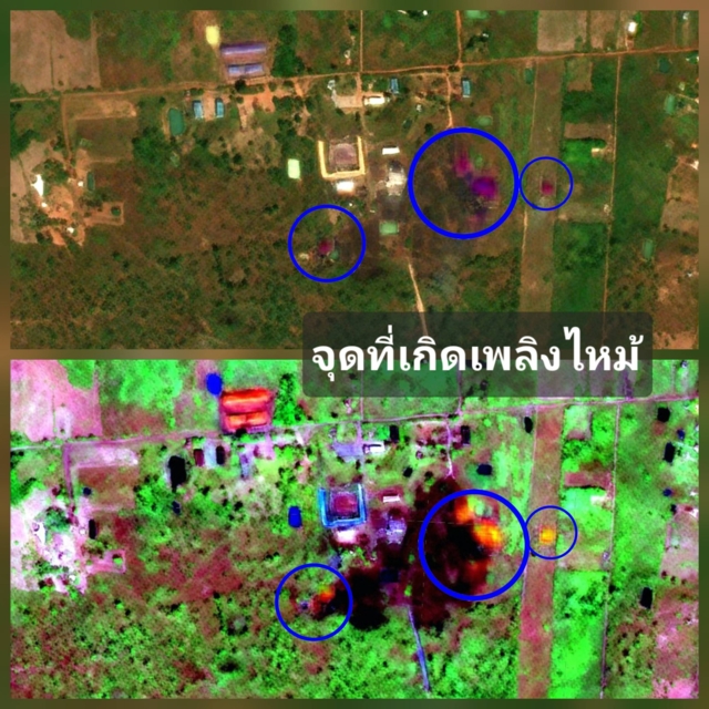 และที่สำคัญอาคารขวาล่าง พระสยามน่าจะพึ่งดลบันดาลให้ข้าวหลามยักษ์ไปตกเมื่อวานนี้ ที่ผมพูดแบบนี้เพราะอะไร เพราะว่าในภาพถ่ายดาวเทียมเมื่อวันที่ 18.12.2025 หรือเมื่อวานนี้ พบว่ามีไฟกำลังไหม้ในพื้นที่โดยรอบของอาคารฝั่งขวาล่าง