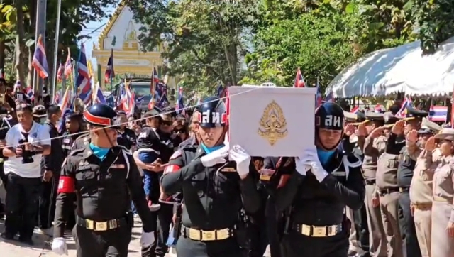 ต่อมา เวลา 12.00 น. ร่างของจ่าเริง เดินทางมาถึง ทหารได้มีการตั้งกองเกียรติยศ เคลื่อนร่างของ จ่าเริง เข้าไปภายในวัด ท่ามกลางความโศกเศร้าเสียใจของญาติพี่น้อง และประชาชนในพื้นที่ แต่ทุกคนภาคภูมิใจที่วันนี้ ร่างของทหารกล้า ได้กลับบ้านแล้ว