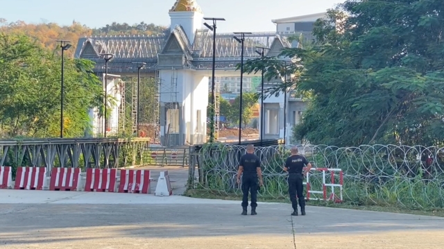 วันที่ 24 ธ.ค.2568 บรรยากาศที่ด่านชายแดนถาวร บ้านผักกาดจังหวัดจันทบุรี บรรยากาศในช่วงเช้าโดยทั่วไปปกติ โดยมีเจ้าหน้าที่ทหารพรานนาวิกโยธิน ออกมาทำความสะอาดสถานที่ บริเวณหน้าด่านชายแดนถาวรบ้านผักกาด ซึ่งเป็นพื้นที่ติดกับด่านพรม จังหวัดไพลิน ประเทศกัมพูชา โดยบรรยากาศทั่วไปเป็นไปด้วยความปกติในพื้นที่ชายแดนไทยกัมพูชาบ้านผักกาด ตำบลคลองใหญ่ อำเภอโป่งน้ำร้อน จังหวัดจันทบุรี ขณะที่ประตูใหญ่ ที่ด่านถาวรบ้านผักกาด ยังคงปิดสนิทซึ่งการเตรียมประชุมคณะกรรมการชายแดนทั่วไปหรือ GBC โดยจะมีการประชุมในวันนี้ที่ 24 ธันวาคม 2568