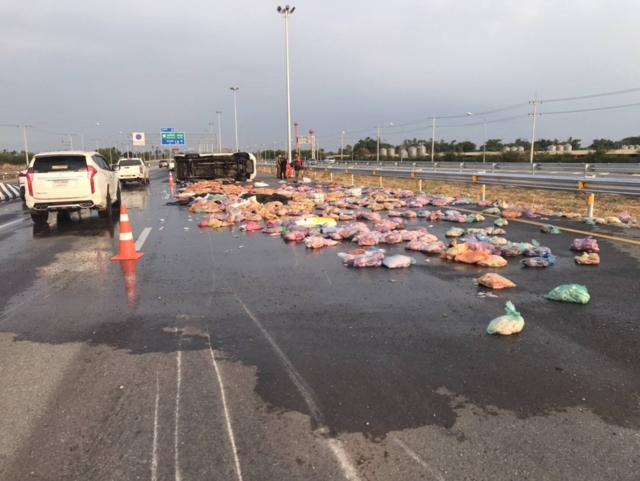 เพจเฟซบุ๊ก ตำรวจทางหลวง แจ้งเกิดอุบัติเหตุรถพลิกคว่ำ ทำให้สิ่งของตกหล่นกีดขวางผิวการจราจร ถนนทางหลวงหมายเลข 81 (บางใหญ่–กาญจนบุรี)ช่วงกิโลเมตรที่ 28 ขาเข้าบางใหญ่ตำรวจทางหลวงเข้าควบคุมพื้นที่ ปิดการจราจร 2 ช่องทางด้านขวา