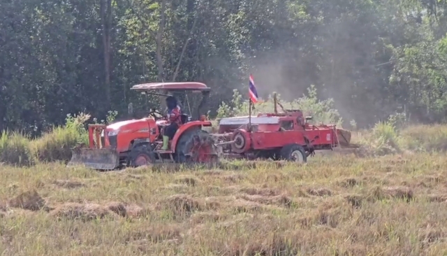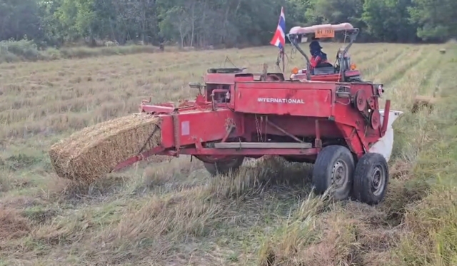 นายประชอบ นาคประโคน อายุ 60 ปี ชาวนา อ.บ้านกรวด จ.บุรีรัมย์ เล่าว่า ตอนนี้จำเป็นต้องเอารถอัดฟางมาอัดฟางที่อยู่ตามไร่นาที่เก็บเกี่ยวข้าวเสร็จไปแล้วก่อนหน้านี้ เพื่อจะนำฟางมาเก็บไว้เลี้ยงไว้วัว