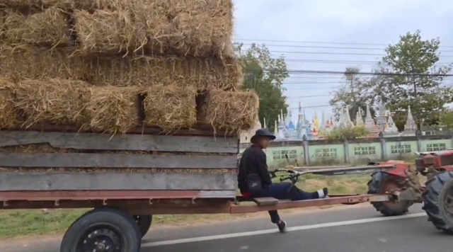 ผู้สื่อข่าวได้พบเจ้าหน้าที่นำฟางก้อนหลายร้อยก้อน มากองไว้ที่หน้าว่าการอำเภอ ให้กับชุด ชรบ. และชาวบ้านมาลงชื่อนำไปให้วัว ควายกิน ซึ่งเจ้าหน้าที่ชุด ชรบ. และชาวบ้านก็จะขี่รถจักยานต์สามล้อพ่วง และรถกระบะมาขนไปพร้อมกับมีเสียงระเบิดเป็นระยะ ๆ ด้วยความรวดเร็ว