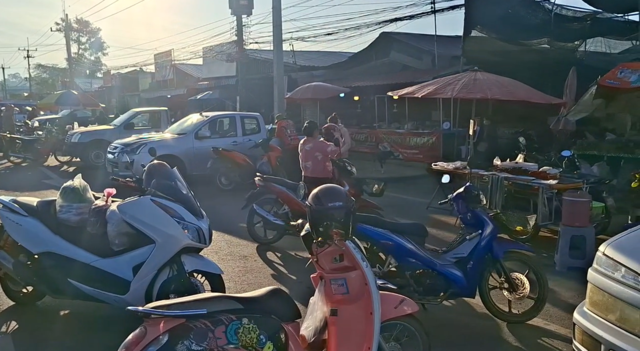 เวลา 07.20 น. ผู้สื่อข่าวจึงลงพื้นที่ย่านตลาดการค้าชายแดนช่องจอม ต.ด่าน อ.กาบเชิงฯ พบว่าบรรดาพ่อค้าแม่ค้าคนชายแดนต่างพากันมาเปิดร้านขายกันแต่เช้า โดยเฉพาะอาหาร ของสด พืชผักผลไม้ต่างๆ เป็นวันที่ 2 แล้ว แม้จะไม่เชื่อใจกัมพูชาและจะรอดูสถานการณ์หลังเที่ยงวันนี้ ต่างก็พร้อมอพยพหากเกิดสถานการณ์ฉุกเฉินขึ้น พร้อมทำใจเริ่มไม่รู้สึกตื่นกลัวหรือตระหนกตกใจ เพราะชินในสถานการณ์กันแล้ว และมีความพร้อมอพยพได้ตลอดเวลาหากกัมพูชาเริ่มสงครามรอบที่ 3 ขึ้นอีก