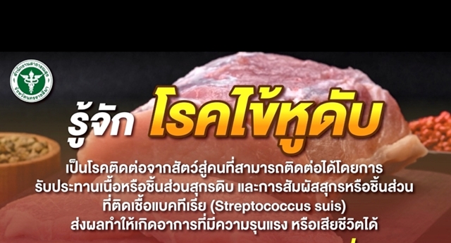 ซึ่งโรคนี้ เกิดจากเชื้อแบคทีเรียสเตรปโตคอกคัส ซูอิส (Streptococcus suis) อยู่ในทางเดินหายใจของหมูและเลือดของหมูที่กำลังป่วย สามารถติดต่อได้ 2 ทาง คือ 1.ทางการบริโภคเนื้อและเลือดหมูที่ปรุงแบบดิบ หรือสุกๆ ดิบๆ 2.ทางการสัมผัสกับหมูที่ติดเชื้อทั้งเนื้อหมู เครื่องใน และเลือดหมูที่เป็นโรค โดยเชื้อจะเข้าทางบาดแผล รอยขีดข่วนตามร่างกายหรือทางเยื่อบุตา หรือการสัมผัสเลือดของหมูที่กำลังป่วย ทำให้หลังจากได้รับเชื้อประมาณ 1-14 วัน ผู้ป่วยจะมีไข้สูง ปวดศีรษะอย่างรุนแรง เวียนศีรษะจนทรงตัวไม่ได้ อาเจียน คอแข็ง