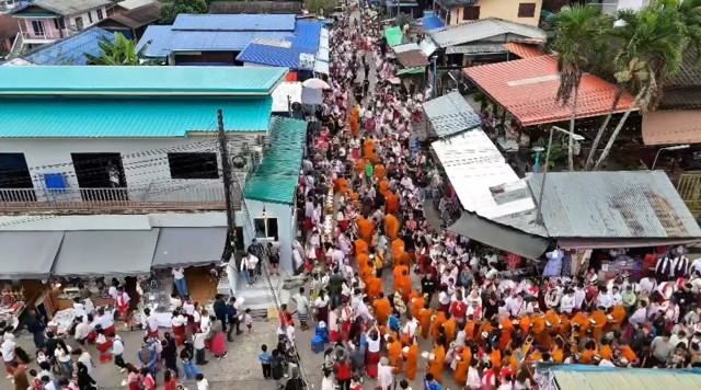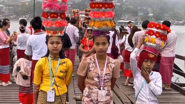 วันที่ 1 ธ.ค.2569 นักท่องเที่ยวร่วมทำบุญตักบาตร รับพรปีใหม่จากพระมหาสุชาติ สิริปัญโญ เจ้าอาวาสวัดวังก์วิเวการาม(วัดหลวงพ่ออุตตมะ)ที่นำพระสงฆ์กว่า 30 รูป มาบิณฑบาต เพื่อความเป็นสิริมงคลในวันปีใหม่ 2569 ก่อนเดินทางเที่ยวชมบรรยากาศยามเช้าบนสะพานไม้อุตตมานุสรณ์ หรือสะพานมอญ สถานที่ท่องเที่ยวสำคัญของอำเภอสังขละบุรี นอกจากนักท่องเที่ยวชาวไทย แล้วยังมีแรงงานชาวเมียนมาร์ที่มาทำงานในพื้นที่จังหวัดใกล้เคียงให้ความสนใจเดินทางมาท่องเที่ยวเป็นจำนวนมาก เนื่องจากไม่สามารถเดินทางกลับไปเฉลิมฉลองเทศกาลปีใหม่ที่บ้านเกิดในประเทศเมียนมาได้ จึงเลือกที่จะเดินทางมาท่องเที่ยวในพื้นที่อำเภอสังขละบุรี โดยเฉพาะชุมชนชาวมอญบ้านวังกะ เนื่องจากเป็นสถานที่ที่มีวัฒนธรรม อาหาร ภาษา และการแต่งกายที่เหมือนกับบ้านเกิด