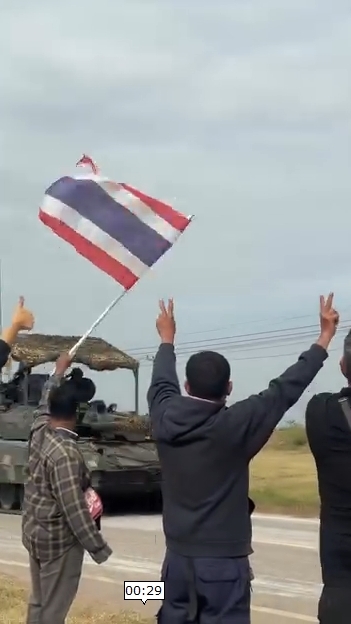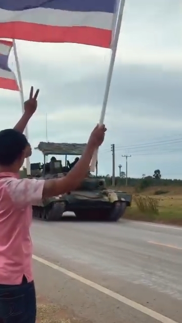 เพจ Army Military Force โพสต์คลิปพร้อมข้อความระบุว่า นักรบอาชาควบรถถังหลัก T-84 Oplot-M แห่งกองพันทหารม้าที่ 2 (ม.พัน.2) กองทัพบกไทย เคลื่อนกำลังออกจากพื้นที่บ้านตาพระยา จ.สระแก้ว หลังเสร็จสิ้นภารกิจตามเป้าหมายที่วางไว้ โดยในระหว่างการเคลื่อนขบวน มีชาวบ้านในพื้นที่ออกมาถือธงชาติพร้อมโบกมือทักทายและกล่าวขอบคุณเหล่านักรบอาชา