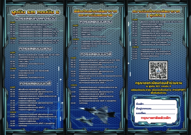 วันนี้ (5 ม.ค.2569) กองทัพอากาศ เชิญชวนประชาชน ผู้ปกครอง เด็ก และเยาวชน ร่วมกิจกรรมงานวันเด็กแห่งชาติของกองทัพอากาศ ประจำปี 2569 ในวันเสาร์ที่ 10 มกราคม 2569 ระหว่างเวลา 07.00 – 15.00 โดยส่วนกลางจัดที่ฝูงบิน 601 กองบิน 6 พิพิธภัณฑ์กองทัพอากาศและการบินแห่งชาติ สนามบินเล็กกองทัพอากาศ (ทุ่งสีกัน)