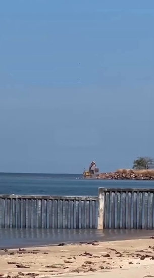 จากคลิปวิดีโอพบว่ามีรถแบคโฮกำลังเร่งขุดดินและตะกอนบริเวณช่วงกึ่งกลางของเขื่อนดักตะกอนกลับเข้าหาฝั่งกัมพูชาหลังจากมีการดำเนินการขุดต่อเนื่องมานานหลายสัปดาห์ส่งผลให้พื้นที่บริเวณกลางทะเลเริ่มมีลักษณะเป็นเกาะกลางน้ำอย่างชัดเจนแหล่งข่าวในพื้นที่ระบุว่าการขุดดินในลักษณะดังกล่าวเป็นความพยายามของฝ่ายกัมพูชาในการปรับสภาพเขื่อนจากจุดกึ่งกลางเพื่อคงพื้นที่บางส่วนไว้กลางทะเลอย่างไรก็ตามยังไม่ทราบวัตถุประสงค์ที่ชัดเจนของการดำเนินการครั้งนี้