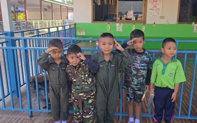 ด.ช.ณัฐชนนท์ ทะลารัมย์ ชั้นป.1 (เสื้อคอปกเขียว) บอกว่า โตขึ้นอยากเป็นทหารเพื่อไปปกป้องชาติและรับใช้ชาติ เช่นเดียวกับด.ช.วุฒิพัฒน์ พูลสำราญ อายุ 9 ขวบ ป.3 บอกว่า โตขึ้นอยากเป็นทหารไปช่วยเหลือประเทศไทย ไม่ให้เขมรมารุกรานหรือเข้ามาในผืนแผ่นดินไทย