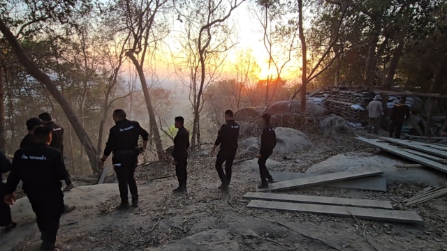 ต่อมา “ กัน จอมพลัง ” ได้ไปสำรวจบันไดไม้ 1,181 ขั้น ที่ทหารกัมพูชาสร้างขึ้นมาเพื่อใช้ลำเลียงกำลังพลและอาวุธ ซึ่งบันไดไม้ตรงนี้ถูกทหารไทยทำลายแบบสิ้นซากแล้ว รวมถึงกระเช้าที่เป็นอีก 1 เส้นทางลำเลียง ขณะที่ได้มีการวางแนวลวดหนามอย่างแน่นหนา เพื่อป้องกันไม่ให้ทหารกัมพูชารุกล้ำเข้ามาได้อีก