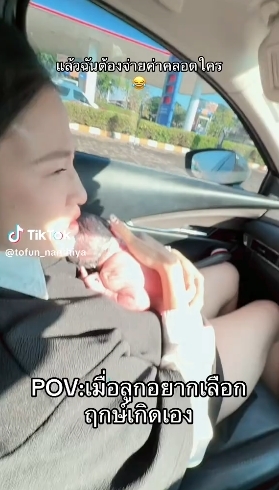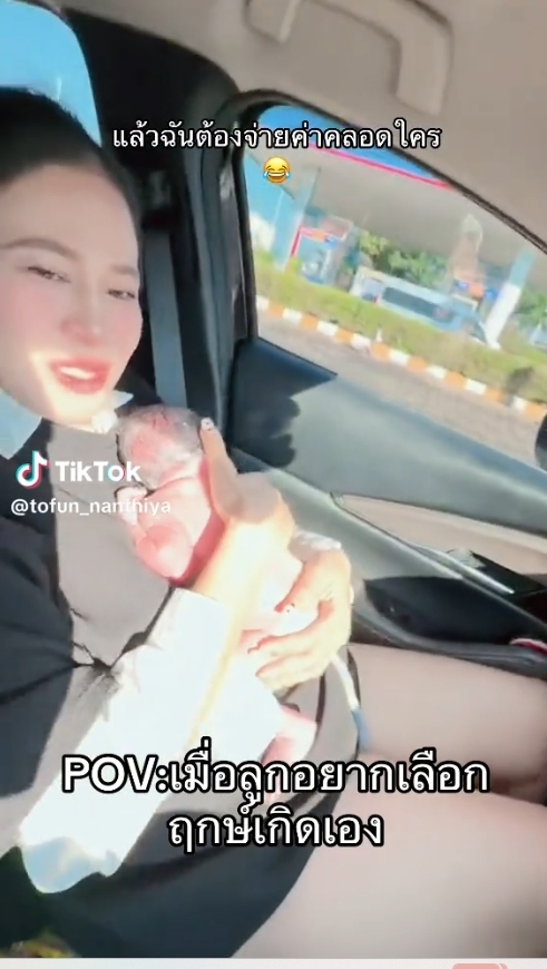 ผู้ใช้บัญชี TikTok @tofun_nanthiya ได้โพสต์คลิปหลังคลอดลูกเองบนรถ พร้อมระบุข้อความว่า “นู๋แค่เลือกวันเวลาเกิดเองค่ะมี๊ 😆 ก็ทำคลอดเองเกร๋ๆไปเล้ย #คลอดธรรมชาติ #คลอดธรรมชาติ #คลอดง่ายมาก”