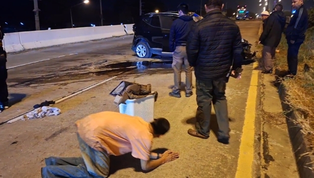 ในที่เกิดเหตุพบรถเก๋งสีดำ จอดขวางถนนไป 1 เลน สภาพด้านหน้าแถบด้านซ้ายพังเสียหายอย่างหนัก ล้อรถหน้าข้างซ้ายหลุดอยู่กลางถนน มีเศษกระจกเสื้อผ้าตกเกลื่อนถนนเป็นแนวยาว ส่วนคนขับเป็นชายวัยรุ่นชื่อนายปอ (นามสมมุติ) อายุ 25 ปีเป็นคนลำปาง ได้รับบาดเจ็บมีเลือดไหลออกหูแต่ไม่มากนัก มีแผลถลอกตามร่างกายเดินร้องไห้เรียกร้องยกมือก้มกราบให้เจ้าหน้าที่เร่งช่วยยายตนเองว่าบาดเจ็บอยู่ในรถเก๋งของตนเอง ทั้งที่ตนเองมาคนเดียวและยังเดินข้ามไปมาบนถนนทำให้ชาวบ้านที่เห็นเหตุการณ์เจ้าหน้าที่ต้องช่วยกันรีบจับตัวเอาไว้ เนื่องจากเกรงว่าจะถูกรถที่วิ่งสวนไปมาชนได้
