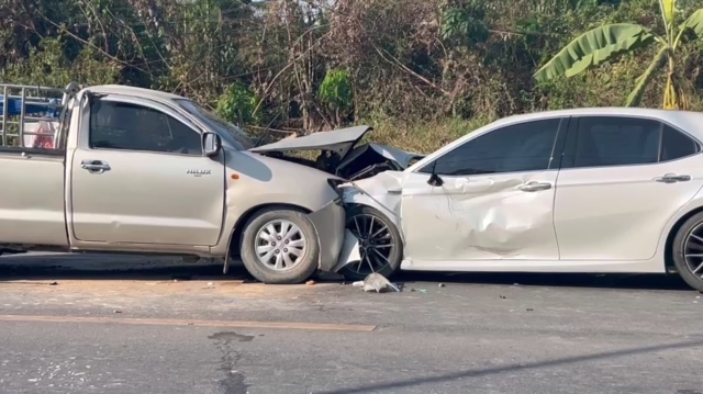 นายทัศนัย (สงวนนามสกุล) อายุ 22 ปี คนขี่จักรยานยนต์ บอกว่า ตนเองขี่รถมุ่งหน้าไปทิศทางเดียวกับรถเก๋งสีขาว จังหวะจะเลี้ยวเข้าซอยรถตนเองชนกับรถเก๋งก่อน แล้วรถเก๋งก็เสียหลักข้ามเลนไปชนรถกระบะ ส่งผลให้เกิดอุบัติเหตุขึ้น