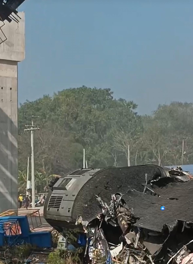 ขณะที่เฟซบุ๊กเพจ “ฅนข่าว ต้นปราการ” โพสต์ข้อความว่า “ด่วน🚨09.40 น 14/1/69 มีรายงาน ด่วน!!! มีเครนก่อสร้างทางรถไฟความเร็วสูง หล่นมาทับรถไฟพื้นราบถนนคตเขตพื้นที่ อ.สีคิ้ว มีผู้บาดเจ็บจำนวนหลายราย และมีไฟลุกไหม้ จนท.ระหว่างช่วยเหลือ”