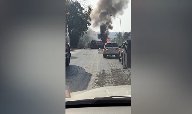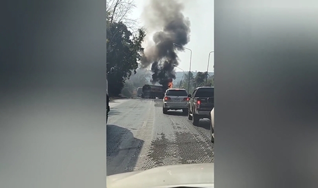เมื่อเวลา 10.40 น.วันที่ 16 ม.ค. 69 จ.นครราชสีมา ผู้สื่อข่าวรายงานว่า เกิดเหตุรถบรรทุกน้ำมันขนาดใหญ่ของบริษัทเอกชนแห่งหนึ่ง เสียหลักชนเสาไฟฟ้าก่อนตกลงข้างทาง และเกิดไฟลุกไหม้อย่างรุนแรงกลางถนน
