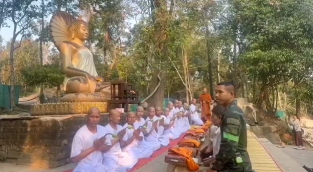 (17 ม.ค. 2569) เมื่อช่วงเช้าที่ผ่านมาในพื้นที่แนวชายแดน ปรากฎว่าทางทีมข่าวได้เดินทางขึ้นไปยัง "ปราสาทตาควาย" พร้อมกับทางเจ้าหน้าที่ทหารพร้อมด้วย "หลวงตาสันต์" เจ้าอาวาสวัดป่าเขาโต๊ะ อ.พนมดงรัก จ.สุรินทร์ เพื่อเดินทางไปร่วมทำพิธีในพื้นที่สมรภูมิปราสาทตาควาย ในการทำพิธีบรรพชาอุปสมบททหารแนวหน้า ที่สู้รบจำนวน 13 นาย เพื่ออุทิศแก่เพื่อนทหารผู้กล้าที่สละชีพเพื่อป้องป้องผืนแผ่นดินไทย ทั้ง 42 นาย จากเหตุปะทะทั้ง 2 รอบ