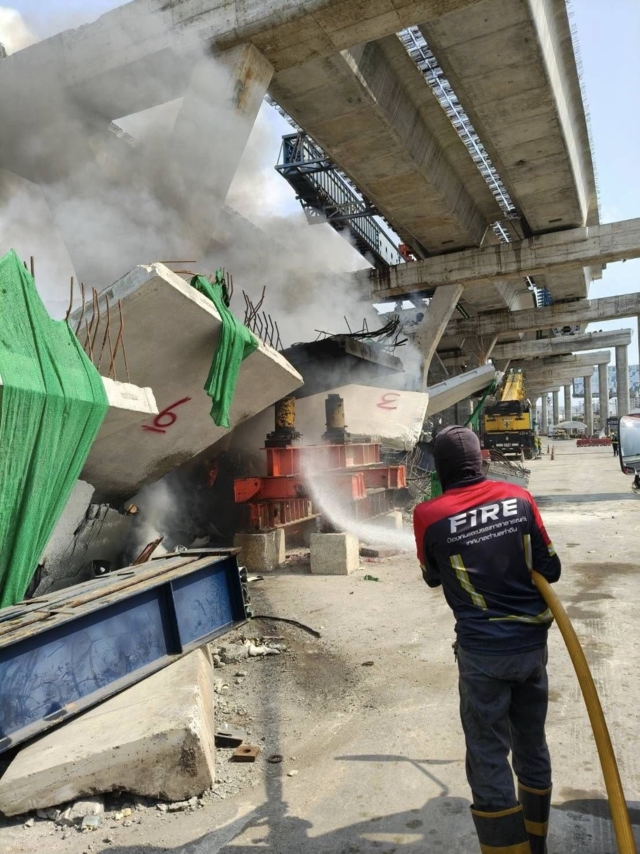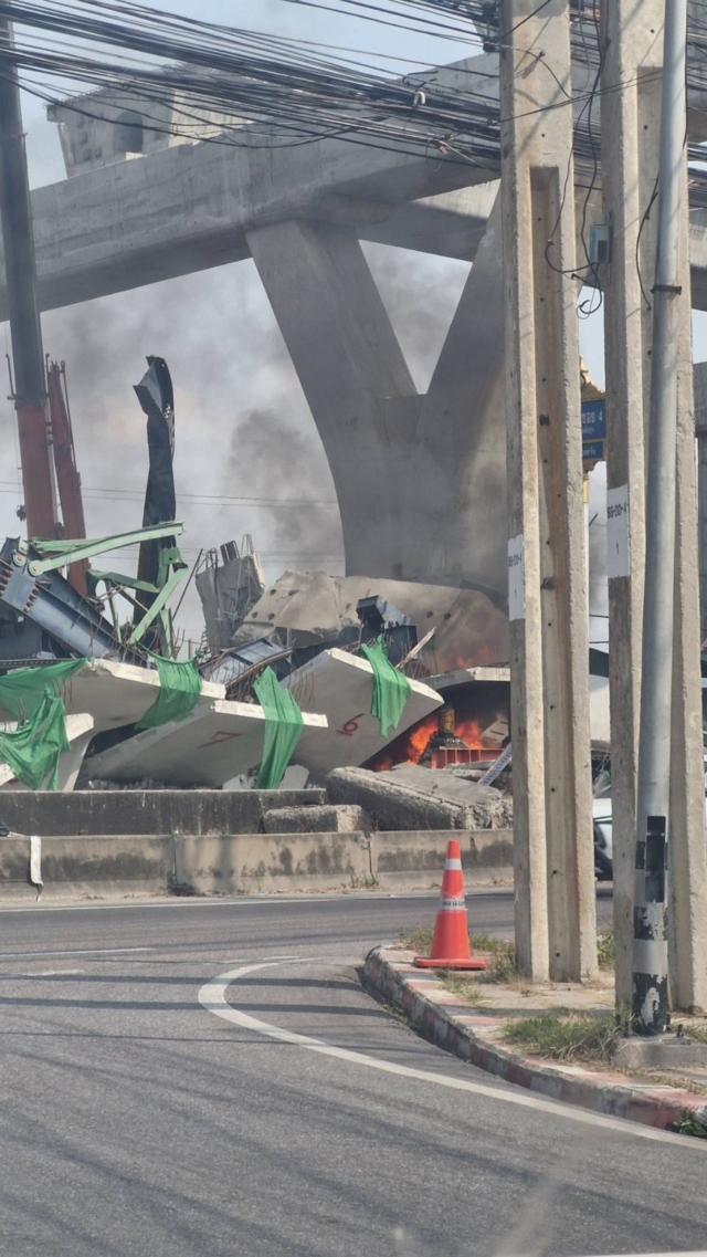 วันที่ 20 ม.ค. 69 เฟซบุ๊กเพจ “Fire & Rescue Thailand” โพสต์ภาพพร้อมข้อความระบุว่า “ไฟไหม้ซากเครนถล่ม ถนนพระรามสอง”