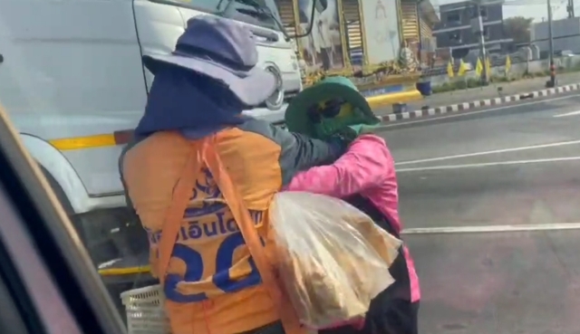 ซึ่งในคลิปจะเห็นว่าแม่ค้าขายข้าวเกรียบว่าว (หรือข้าวโป่ง) และแม่ค้าขายโดนัท บริเวณสี่แยกไฟแดงได้ทะเลาะกัน และได้ลงไม้ลงมือกัน สักพักเพื่อนได้เข้ามาห้าม จึงแยกย้ายกันไป ซึ่งเหตุเกิดเมื่อเวลา 09.33 น. ของวันนี้