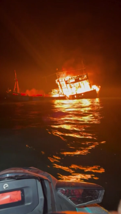 เมื่อเวลา 03.00 น. (21 ม.ค. 2569) ทีมกู้ภัยไต้เต็กเซี่ยงตึ๊ง ท่าศาลา อ.ท่าศาลา จ.นครศรีธรรมราช นำเจ็ทสกีและกำลังทีมกู้ภัยเข้าตรวจสอบเรือประมงขนาดใหญ่ ลอยลำอยู่บริเวณปากน้ำปากอ่าวท่าศาลา ต.ท่าศาลา อ.ท่าศาลา จ.นครศรีธรรมราช อยู่ในสภาพเพลิงไหม้รุนแรง โดยได้เข้าทำการค้นหาลูกเรือ
