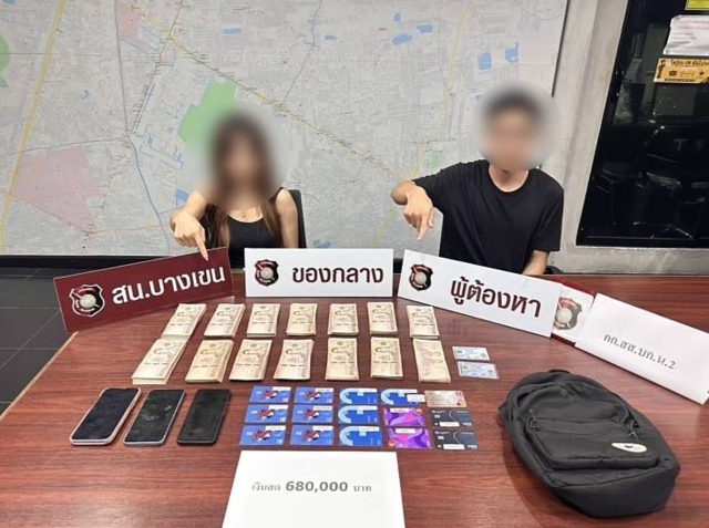 วันที่ 21 ม.ค.2569 พ.ต.อ.อนันต์ วรสาตร์ ผกก.สน.บางเขน พร้อมด้วย พ.ต.ท.คณิณ ค้ำคูณ รอง ผกก.ป., พ.ต.ท.พรชัย ว่องประเสริฐการ สว.สส.(รรท. รอง ผกก.สส.), พ.ต.ท.อดุลย์ โพธากาญ สวป.,พ.ต.ท.ยุรนันท์ เพชรมณี สว.สส. เจ้าหน้าที่ กก.สส.บก.น.2, ตำรวจสายตรวจและฝ่ายสืบสวน สน.บางเขน ร่วมกันจับกุม น.ส.จันจิรา คูณยา อายุ 34 ปี และนายวุฒิไกร นิลเกษ อายุ 30 ปี พร้อมของกลางเงินสด 680,000 บาท บัตรเอทีเอ็ม จำนวน 15 ใบและโทรศัพท์มือถือ 3 เครื่อง สถานที่จับกุมบริเวณตู้เอทีเอ็มธนาคารแห่งหนึ่ง หน้าร้านสะดวกซื้อ ภายในปั๊มน้ำมัน ถนนเทพรักษ์(ขาออก) แขวงท่าแร้ง เขตบางเขน กทม.