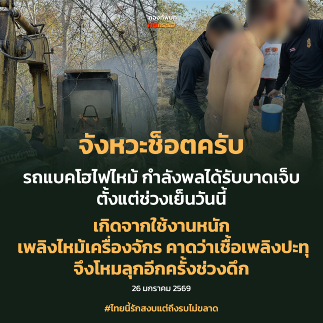 เร่งงานไปหน่อยครับ จังหวะช็อตครับ รถแบคโฮไฟไหม้ กำลังพลได้รับบาดเจ็บ ตั้งแต่ช่วงเย็นวันนี้