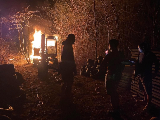 ด่วน!! มีรายงานล่าสุดว่า รถแบคโฮของตำรวจตระเวนชายแดนไทย ซึ่งประจำการใกล้พื้นที่เขาพระวิหารบริเวณชายแดนไทย-กัมพูชา ถูกต้องสงสัยว่าเป็นการลอบวางเพลิงจนได้รับความเสียหายอย่างหนัก