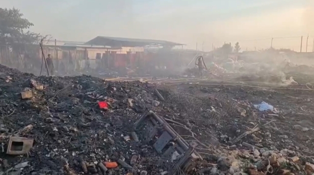 ที่เกิดเหตุพบว่า ต้นเพลิงเกิดขึ้นภายในร้านรับซื้อของเก่า ซึ่งมีวัสดุสินค้าที่เป็นพวกของเก่าต่างๆ โดยเฉพาะพลาสติก และถังสีเก่าต่างๆ ทำให้กลายเป็นเชื้อเพลิงอย่างดีนอกจากนั้นยังมีร้านรับซื้อของเก่าข้างเคียงที่อยู่ติดกันหลายร้าน จึงทำให้เพลิงลุกไหม้ และลุกลามอย่างรวดเร็ว ก่อนจะขยายวงกว้าง ท่ามกลางแสงเพลิง และกลุ่มควันสีดำพวยพุ่งสู่ท้องฟ้า มองเห็นได้แต่ไกล แถมยังมีเสียงระเบิดดังขึ้นเป็นระยะๆ เจ้าหน้าที่ดับเพลิงต้องระดมรถน้ำกว่า 10 คัน พร้อมด้วยนักผจญเพลิงหลายสิบนายเข้าระงับเหตุในครั้งนี้
