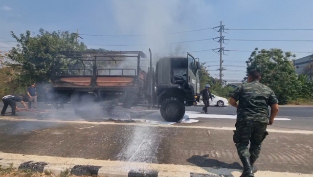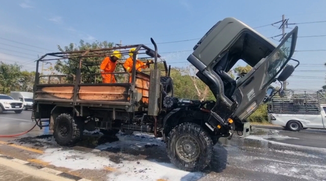 วันที่ 30 ม.ค.69 เมื่อเวลา 12.10 น. ร.ต.ท.ถิรวิทย์ เยี่ยมสวัสดิ์ ร้อยเวร สภ.เมืองราชบุรี ได้รับแจ้งเหตุไฟไหม้รถทหาร บริเวณถนนเพรชเกษมจุดกลับหน้าเขาแก่นจันทร์ อำเภอเมือง จังหวัดราชบุรี จึงประสานไปยังเจ้าหน้าที่บรรเทาสาธารณภัย อบต.ดอนตะโก และมูลนิธิประชานุกูลราชบุรี พร้อมกำลังอาสาสมัคร นำรถดับเพลิงเข้าระงับเหตุ ที่เกิดเหตุ พบรถบรรทุก 4 ล้อ ยี่ห้ออีซูซุ หมายเลขทะเบียน 95812 ด้านข้างรถมีสติ๊กเกอร์ พล.ร.9 ถูกเพลิงกำลังลุกไหม้ทั้งคัน เจ้าหน้าที่ต้องเร่งปิดกั้นเส้นทางการจราจรซึ่งขณะนั้นมีรถสัญจรคับคั่ง ก่อนระดมฉีดน้ำสกัดเพลิง ใช้เวลาประมาณ 20 นาที จึงสามารถควบคุมสถานการณ์ไว้ได้