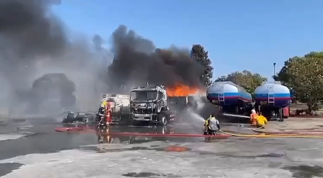 ขณะเดียวกันเจ้าหน้าที่ดับเพลิงได้ระดมรถน้ำหลายคันและใช้น้ำผสมโฟมฉีดเข้าควบคุมเพลิงอย่างต่อเนื่อง เพื่อป้องกันไม่ให้ไฟลุกลามไปยังพื้นที่ใกล้เคียง โดยเฉพาะปั๊มน้ำมันและอาคารสำคัญซึ่งหากเกิดการลุกลามอาจก่อให้เกิดความเสียหายรุนแรงมากขึ้น