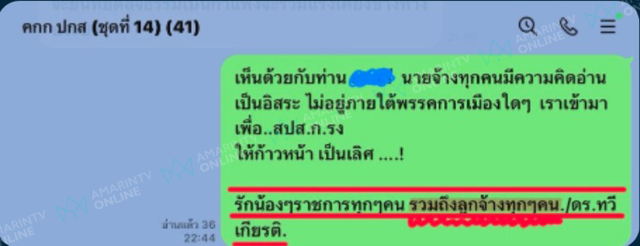 ซึ่งนายทวีเกียรติ ได้เปิดเนื้อหาการพูดคุยก่อนหน้านี้ ว่ามีบุคคลหนึ่งในกลุ่ม LINE พิมพ์เข้ามาว่า