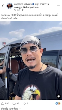 ต่อมาหนุ่มบิ๊กสุรินทร์ ก็ได้ออกมาโพสต์คลิปแจ้งผ่านเพจ “บิ๊กสุรินทร์แฟนเพจ ”พร้อมระบุข้อความว่า “รถทีมงาน Staff บิ๊กสุรินทร์ เกิดเพลิงไหม้ ที่ จ.นครปฐม ตอนนี้ปลอดภัยแล้วครับ” ซึ่งหนุ่มบิ๊กยังแจ้งว่า เหตุไฟไหม้ครั้งนี้คาดว่าน่าจะเกิดจากระบบไฟลัดวงจร และมีน้องทีมงาน Backstage โดนไฟไหม้ที่มือ ได้รับบาดเจ็บเล็กน้อย ตนฝากถึงแฟนคลับ แฟนเพลงไม่ต้องเป็นห่วง เจ้าตัว รวมถึงทีมงานทุกคนปลอดภัยดี และพร้อมเดินทางไปลุยงานต่อ