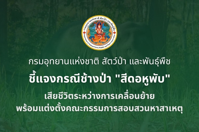 ล่าสุด (4 ก.พ. 2569) กรมอุทยานแห่งชาติ สัตว์ป่า และพันธุ์พืช ขอชี้แจงข้อเท็จจริงและแสดงความเสียใจอย่างสุดซึ้งต่อการสูญเสียช้างป่าสีดอหูพับ ซึ่งเสียชีวิตระหว่างการเคลื่อนย้ายจากจังหวัดขอนแก่นไปยังพื้นที่โครงการฟื้นฟูอาหารช้างป่าภูหลวง จังหวัดเลย