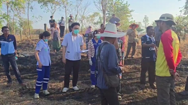 ที่เกิดเหตุพบมีการเผาตอซังข้าวเป็นเวิ้งกว้างเนื้อที่กว่า 20 ไร่กลางทุ่งนา พบชาวบ้านกำลังให้การช่วยเหลือนายสุดใจ อายุ 70 ปี เจ้าหน้าที่ตรวจสอบพบว่าเสียชีวิตแล้ว ท่ามกลางความเสียใจของญาติที่มาเห็นสภาพเป็นอย่างมาก