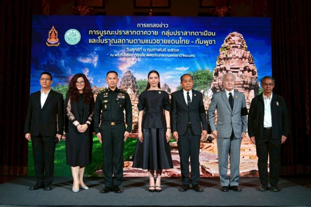 นางสาวซาบีดา ไทยเศรษฐ์ รัฐมนตรีว่าการกระทรวงวัฒนธรรม เป็นประธาน การแถลงข่าวการบูรณะปราสาทตาควาย กลุ่มปราสาทตาเมือนและโบราณสถานตามแนวชายแดน ไทย- กัมพูชา โดยมีนายประสพ เรียงเงิน ปลัดกระทรวงวัฒนธรรม นายพนมบุตร จันทรโชติ อธิบดีกรมศิลปากร ผู้แทนกองทัพบก นางสาวลิปิการ์ กำลังชัย ผู้ตรวจราชการกระทรวงวัฒนธรรม ผู้แทนกองทัพบก ผู้แทนกระทรวงการต่างประเทศ และหน่วยงานร่วมบูรณาการด้านความมั่นคงของชาติ เข้าร่วมฯ ณ พระที่นั่งอิศราวินิจฉัย พิพิธภัณฑสถานแห่งชาติ พระนคร