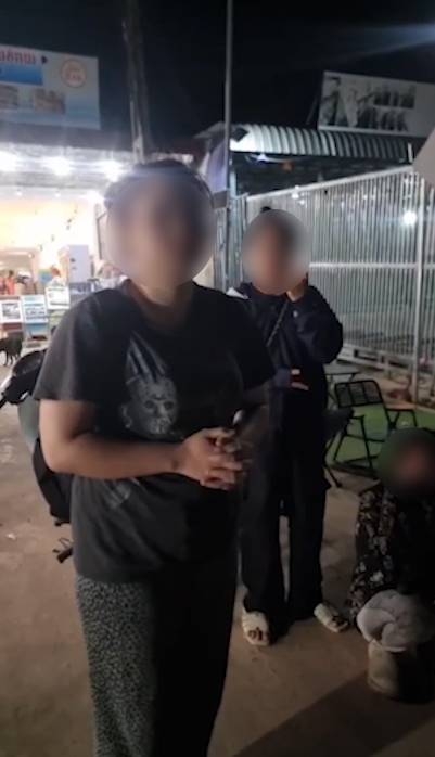 ขณะที่ผู้หญิงไทยบอกอีกว่า มีคนหลอกพาข้ามมาฝั่งกัมพูชาไม่รู้ข้ามมาช่องด่านไหน เขาบอกว่าจะพามาทำงานที่ฝั่งไทย แต่อยู่ๆ ก็พาข้ามมาฝั่งกัมพูชา และยึดทั้งบัตรประชาชนและโทรศัพท์ไป โดยชาวกัมพูชาระบุว่า เมื่อวานก็มีคนไทยถูกหลอกมาทิ้งไว้ 4-5 คน เดี๋ยวตำรวจกัมพูชามาเขาไม่ทำอะไรหรอก ประชาชนเหมือนกัน เขาไม่ทำอะไรหรอก โดยผู้หญิงไทยบอกว่าตนเอง อยู่ จ.เชียงราย อีกคนบอกอยู่ จ.บุรีรัมย์, จ.ขอนแก่น 2 คน และ จ.ศรีสะเกษ พร้อมกับถามชาวกัมพูชาว่า ใช้เวลากี่วันถึงจะได้กลับบ้าน ชาวกัมพูชาบอกว่าน่าจะ 3-4 วัน ไปที่สถานีตำรวจวันนี้ ก็จะเจอคนไทย 4 คน ที่ถูกหลอกมาก่อนหน้านี้ด้วย