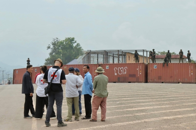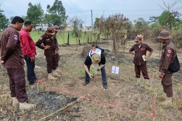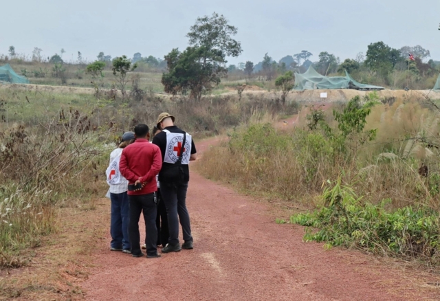 จากภาพพบว่ามีเจ้าหน้าที่หลายฝ่ายร่วมลงพื้นที่ ประกอบด้วยเจ้าหน้าที่ที่สวมเครื่องหมายกาชาดของคณะกรรมการกาชาดสากล (ICRC) เจ้าหน้าที่ฝ่ายความมั่นคงท้องถิ่นของกัมพูชาที่แต่งเครื่องแบบสีน้ำตาล รวมถึงเจ้าหน้าที่ฝ่ายปกครองและบุคลากรพลเรือนในพื้นที่ที่แต่งกายชุดสุภาพเข้าร่วมสังเกตการณ์