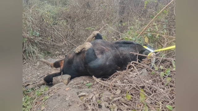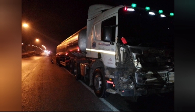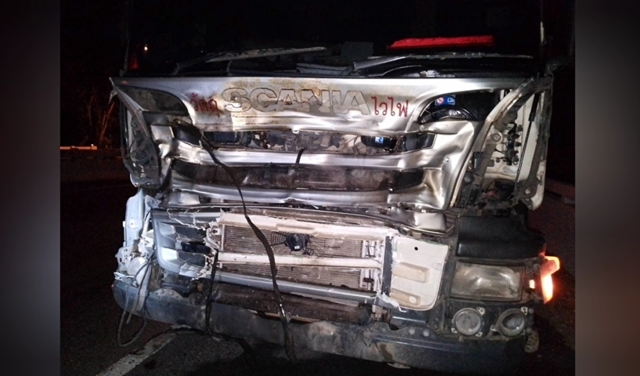 ที่เกิดเหตุพบรถบรรทุกน้ำมัน จอดอยู่ริมถนนสภาพด้านหน้ารถพังเสียหาย ห่างออกไปพบซากกระทิงป่า ไม่ทราบเพศ นอนตายอยู่กลางถนน