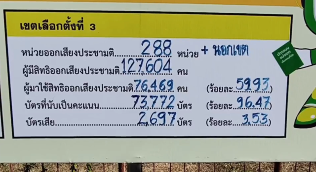 นายหมวดโทกฤติเดช ดารารัตน์ ผู้อำนวยการเลือกตั้งประจำเขต 3 จ.ศรีสะเกษ กล่าวว่า ยอมรับว่า เกิดจากข้อผิดพลาดของทางเจ้าหน้าที่เอง ทำให้ข้อมูลคลาดเคลื่อน เนื่องจากไม่ได้นำเอาผลคะแนนการเลือกตั้งนอกเขตแบบบัญชีรายชื่อ จำนวน 5,556 คะแนน มารวมคะแนนการเลือกตั้งในเขต เมื่อวันที่ 8 ก.พ. 2569 หลังนับคะแนนเสร็จสิ้น เจ้าหน้าที่จึงได้นำตัวเลขผลคะแนนการเลือกตั้งในเขตไปเขียนขึ้นป้ายประกาศที่หน้าที่ว่าการ อ.ศรีรัตนะ โดยนำข้อมูลเฉพาะผลคะแนนเลือกตั้งในเขตจำนวน 69,777 คะแนน ไปเขียนขึ้นป้าย ทำให้จำนวนบัตรเลือกตั้งแบบบัญชีรายชื่อที่เขียนบนกระดานหายไปจำนวน 5,556 คะแนน เมื่อเจ้าหน้าที่รับทราบข้อผิดพลาดแล้วจึงรีบดำเนินการตรวจสอบและเร่งแก้ไขเพื่อให้ถูกต้อง โดยการนำผลคะแนนของการเลือกตั้งนอกเขตมารวมกันกับผลคะแนนเลือกตั้งในเขต ได้ผลคะแนนรวม 75,333 คะแนน ซึ่งครบถ้วนถูกต้อง