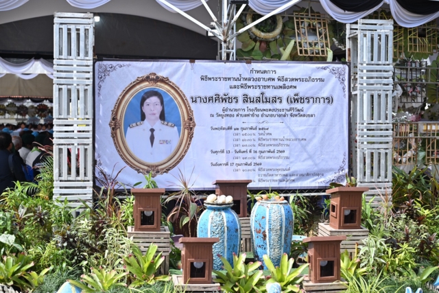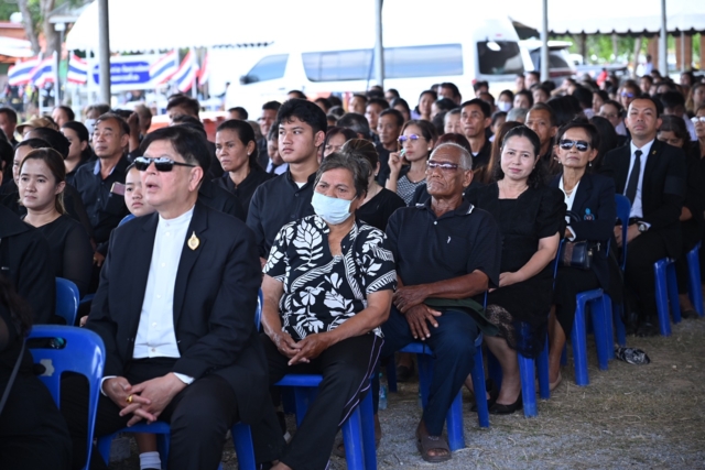 จากนั้นนายกรัฐมนตรีและคณะ เดินทางไปยังวัดยูงทอง อ.บางกลํา จ.สงขลา นายอนุทิน ชาญวีรกูล นายกรัฐมนตรีและรัฐมนตรีว่าการกระทรวงมหาดไทย ประธานในพิธีพระราชทานเพลิงศพ นางศศิพัชร สินสโมสร ผู้อํานวยการโรงเรียนพะตงประธานคีรีวัฒน์ จากเหตุชายคลุ้มคลั่งบุกจับเด็กนักเรียนเป็นตัวประกัน