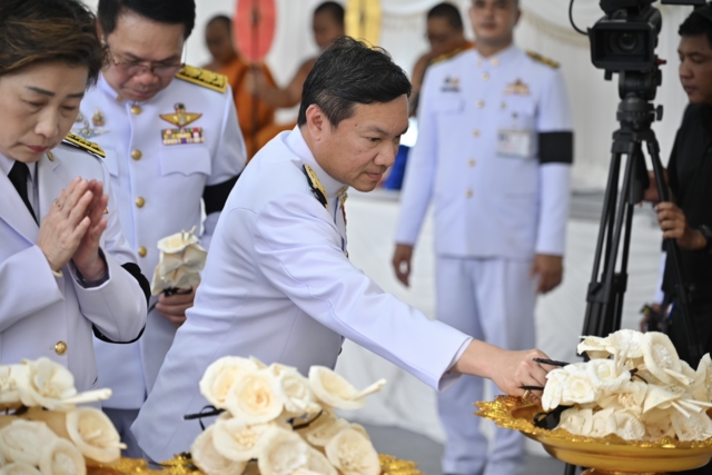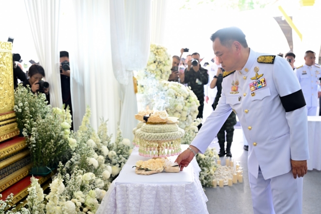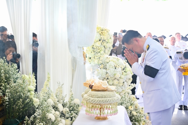 ผู้สื่อข่าวรายงานว่า ระหว่างการฟังประวัติของผู้วายชนม์ นายกรัฐมนตรีได้พูดคุยกับสามีของผู้เสียชีวิต ที่นั่งอยู่ติดกันอยู่ตลอด ก่อนที่นายกรัฐมนตรีจะเป็นประธานทอดผ้าไตรพระราชทาน และวางดอกไม้จันทน์