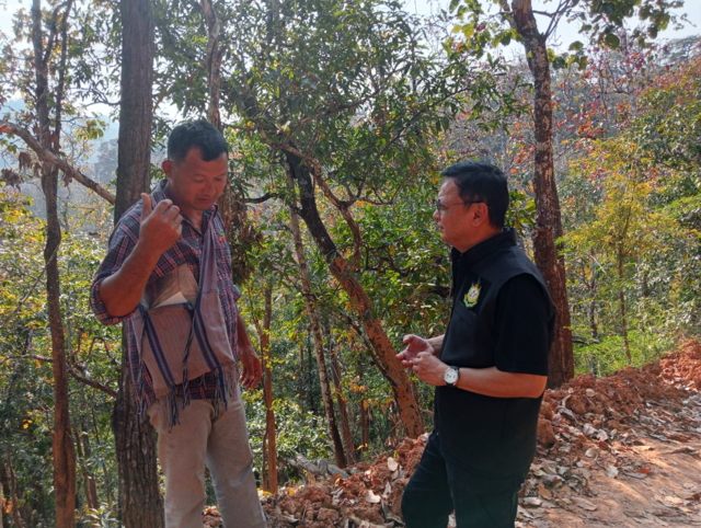 ทั้งนี้ ถนนเส้นนี้มีความ ยาว 6.6 กิโลเมตร สร้างเสร็จภายใน 2 เดือนนั้น สอบสวน ทราบว่า เจ้าหน้าที่ของรัฐเข้าไปประชาสัมพันธ์กับชาวบ้านแอบอ้างว่าถนนเส้นนี้เป็นงบประมาณของหลวงจะรีบดำเนินการตัดให้แล้วเสร็จ เพื่ออำนวยความสะดวกให้ชาวบ้าน เมื่อมีการประชาคมชาวบ้านจึงไม่ขัดข้อง ซึ่งจริงแล้วยังไม่มีแผนที่จะทำถนนเส้นนี้ แต่มีผู้แอบอ้างซึ่งเป็นเจ้าหน้าที่ของรัฐเอง ส่วนปัญหาถนนเส้นนี้มีมาตรการเร่งด่วนจำเป็นต้องปิดถนนก่อนทั้งหัวท้าย เพื่อจะไม่ให้ใช้ประโยชน์ ขั้นตอนต่อไป เร่งทำการฟื้นฟูให้กลับมาเป็นพื้นที่ป่าให้สมบูรณ์เหมือนเดิม