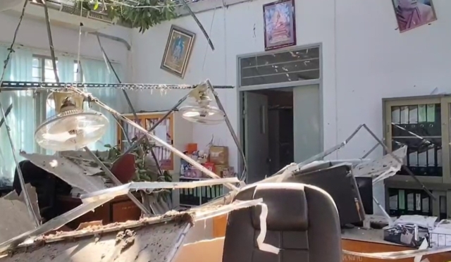 โดยจุดเกิดเหตุ พบต้นยางใหญ่ จำนวน 2 ต้น ตั้งอยู่ภายในบริเวณที่ทำการไปรษณีย์พิมาย ซึ่งต้นยางนาต้นใหญ่อายุไม่ต่ำกว่า 250 ปี ลำต้นและกิ่งส่วนบนได้หักโค่นลงมาทับกับอาคารศูนย์บริการสาธารณสุข เทศบาลตำบลพิมาย ซึ่งเป็นอาคาร 2 ชั้น ทำให้กระเบื้องหลังคาชั้นบนแตกหักและพังลงทั้งแทบ ส่วนสิ่งของหลายรายการ รวมถึง ตู้เอกสารต่างๆ พังเสียหาย เบื้องต้นยังไม่สามารถประเมินมูลค่าความเสียหายได้