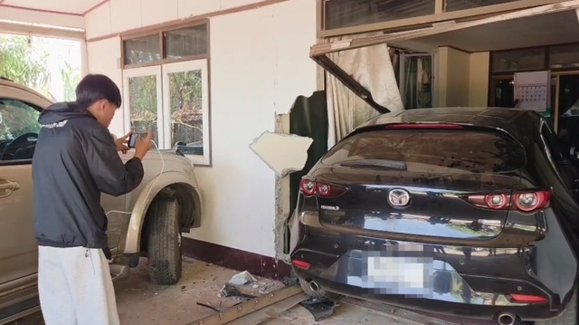 ทางด้านนายบุญรบ เจ้าของบ้านเล่าว่า ขณะที่นั่งอยู่ที่เก้าอี้เหล็กหน้าบ้าน เห็นรถคันดังกล่าวแล่นมาปกติ พอดีมีสุนัขมันวิ่งไล่กัน คงทำให้คนขับตกใจ จึงเหยียบคันเร่งพุ่งตรงมาที่บ้าน ตนจึงลุกขึ้นเดินหลบออกมาเห็นรถเก๋งชนรถกระบะตนที่จอดอยู่ก่อน แล้วแฉลบไปชนกระจกบานเลื่อนแตกละเอียด โชคดีที่ไม่มีใครได้รับบาดเจ็บ ส่วนภรรยาไปเยี่ยมลูกหลานที่ต่างจังหวัด จึงเหลือตนอยู่บ้านเพียงคนเดียว
