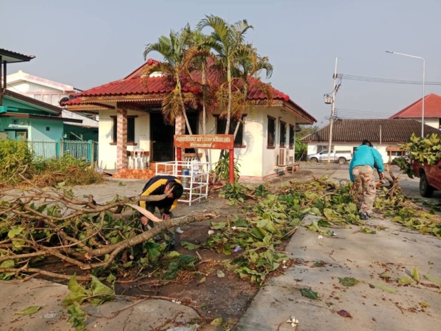 บ้านเรือนราษฎรได้รับความเสียหาย โดยเฉพาะหลังคาบ้านถูกแรงลมพัดกระเบื้องหลุด ปลิว หรือชำรุดบางส่วน ขณะนี้อยู่ระหว่างการสำรวจรายละเอียดจำนวนครัวเรือนที่ได้รับผลกระทบเพิ่มเติม